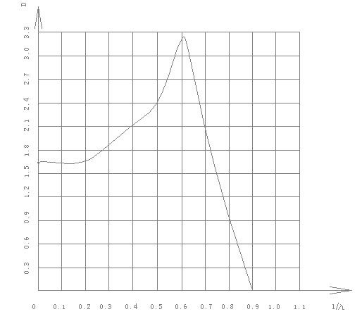 如上所述理論和實踐都證明,天線增益是通過基本單元同相排陣而實現的,基本單元的電長度尺寸是決定基本增益的關鍵,下圖顯示了方向系數隨電長度的變化情況。