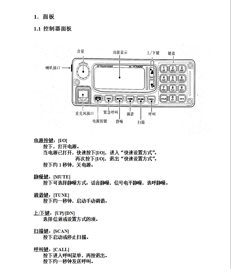 艾可慕 IC-F7000短波電臺簡易使用說明