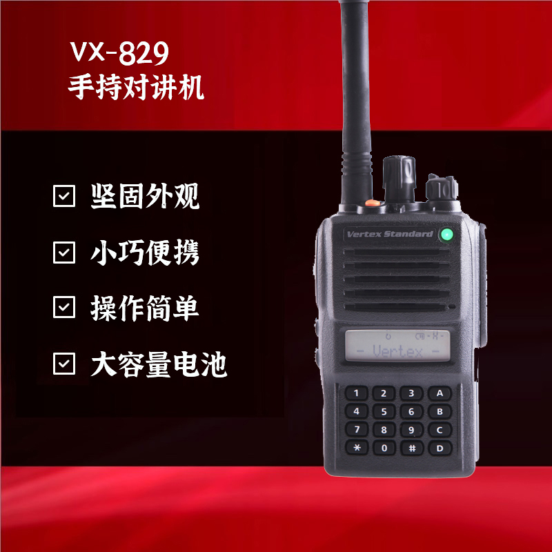 摩托羅拉VX-829(防爆)的工作頻率為136-174 MHz/400 -470MHz,通訊距離可達5公里,即使在嘈雜的環境中仍可以保持暢通的聯系。其本身具有防爆的特性,達到標810C,810D,810E。性能值得信賴.