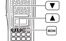 按住[MONI]鍵,同時按住上下箭頭,選擇合適的靜噪電平,從0~10 11個檔位可供選擇