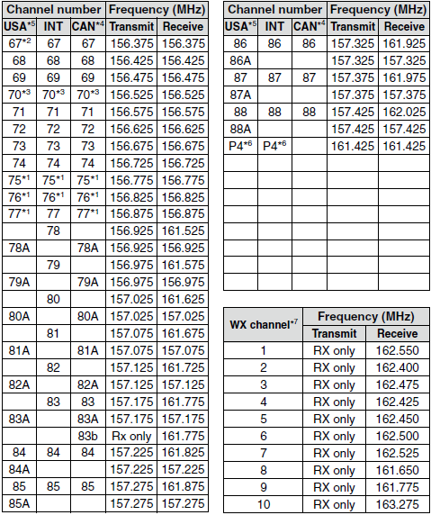 按照國際海事通信的統一規定,海上船用甚高頻(VHF)的工作頻率范圍:發射頻率從156.025 MHz到157.425 MHz;接收頻率從156.025 MHz到163.275MHz。工作頻道主要分為國際頻道、美國頻道、加拿大頻道和歐洲的內河頻道,還有10個氣象頻道(其中8個是美國氣象頻道,2個是加拿大氣象頻道)用于船長、駕駛員守聽美國和加拿大沿海的氣象信息。