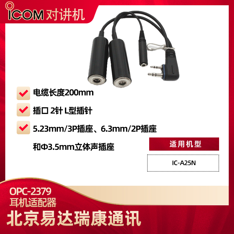 IC-A25耳機適配器/結實耐用/雙插頭/線長16cm