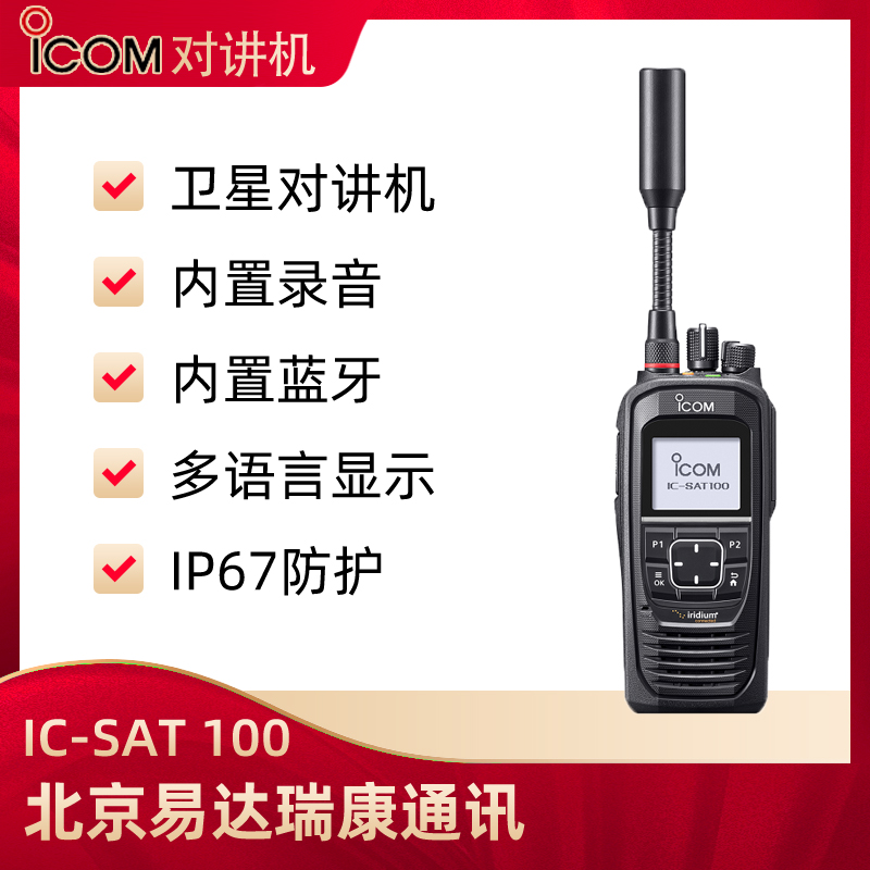 Icom IC-SAT100M是專用的衛星按鍵通話(PTT)對講機,是唯一一款只需按下一個按鈕即可在組和個人之間提供實時通信的PTT對講機。