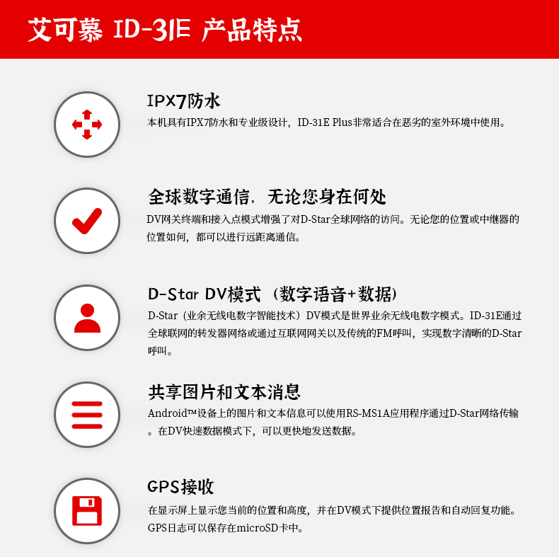 ID-31E選用功放,盡管體積小巧仍可達到5W射頻輸出功率。