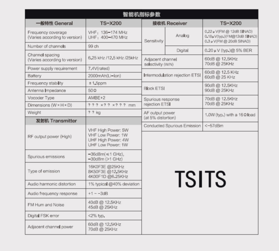 TSITS 天易思手持對講機,數模兼容X200對講機