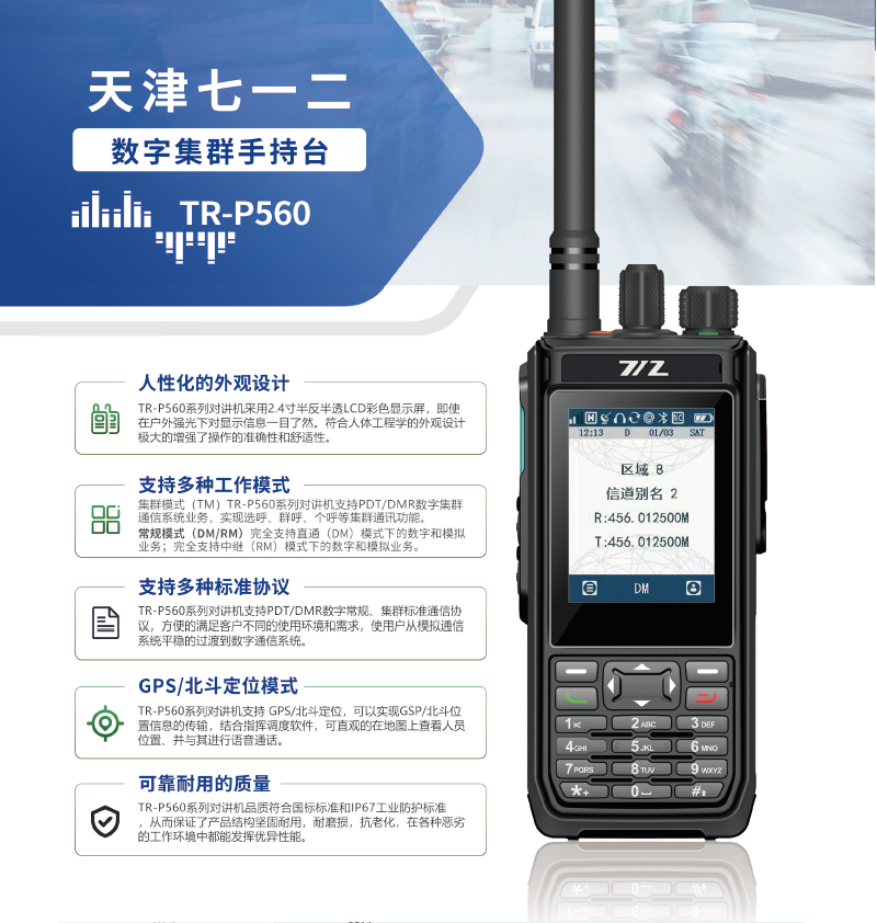 天津712C出品集群手持臺TR-P560UHF/P580VHF/TCB-C-236D內置藍牙北斗GPS